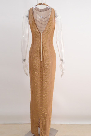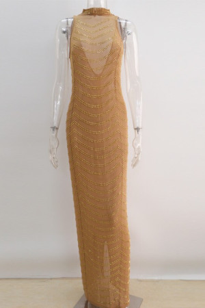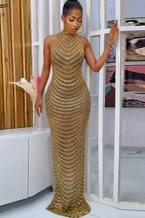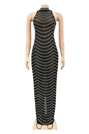 Glamorous Crystal-Studded Long Maxi Open Back Sequins Club Dress for a Memorable Birthday...