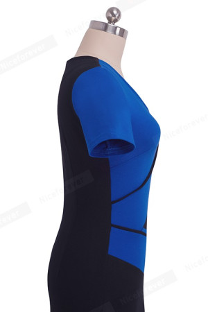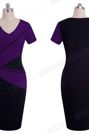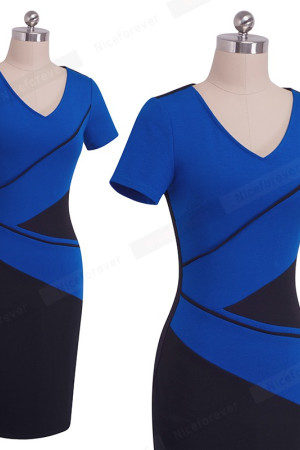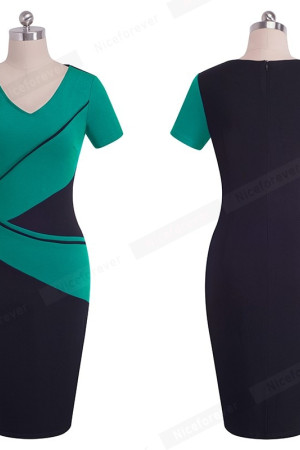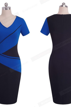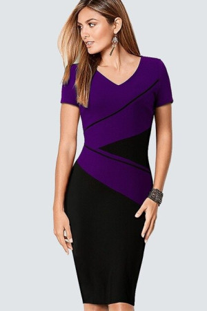 Plus Size Contract Colorblock Business Sheath Bodycon Pencil Dress for the Classic Working Lady