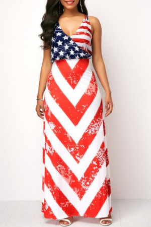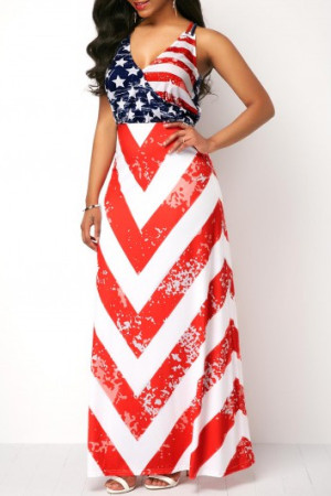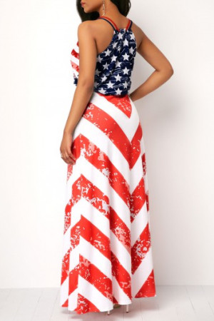 Women's Sleeveless V-Neck Star Print Maxi Dress