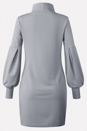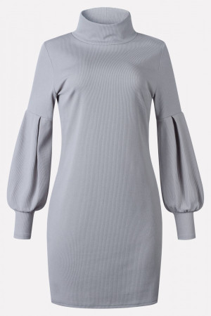 Chic Gray Turtle Neck Puff Sleeve Sweater Dress for Casual Wear