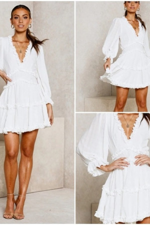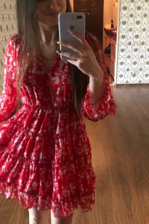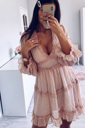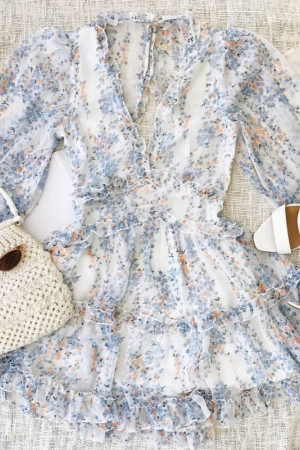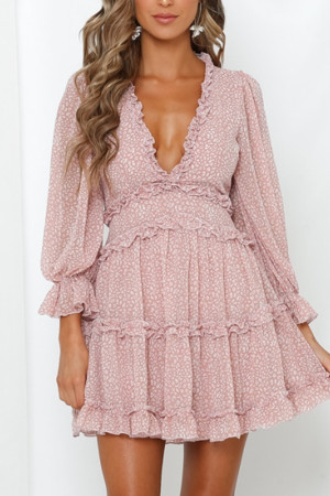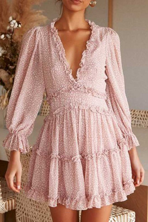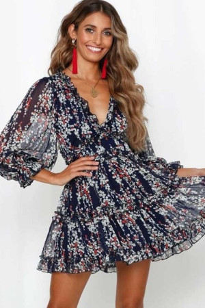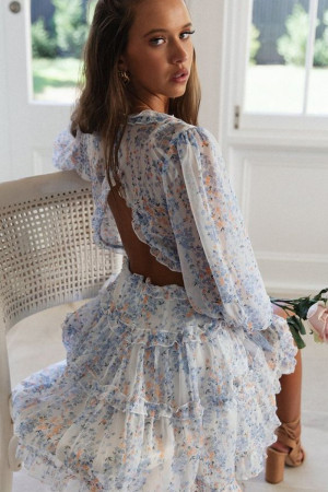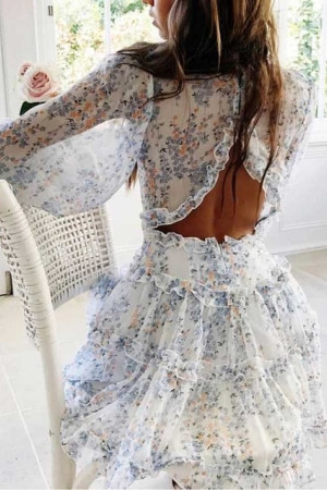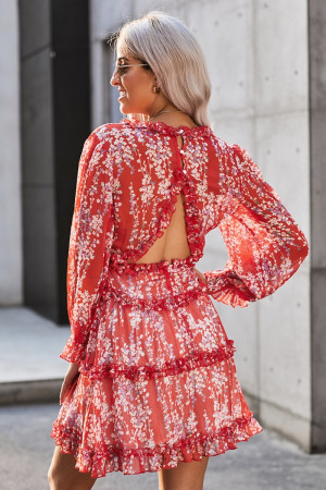 Plus Size Party Perfection: Harlow Floral Ruffle Dress Backless V-Neck Mini Dress