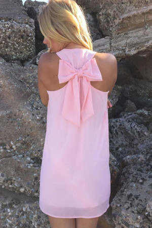 Pretty in Pink: Light Bow Back Sleeveless Chiffon Shift Dress