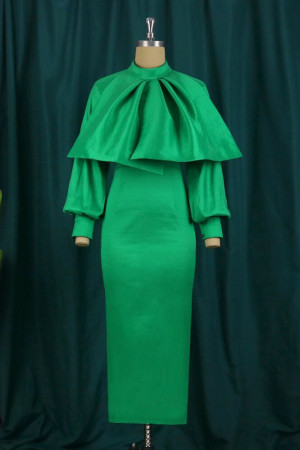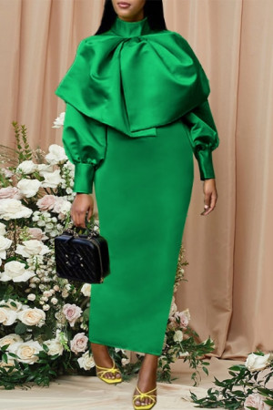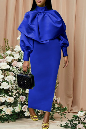 Celebratory Event Gown: Maxi Dress with Long Lantern High Neck, Bodycon Fit, and Shiny...