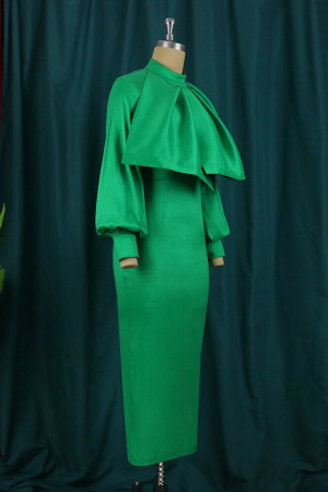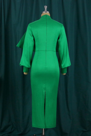 This stylish silhouette sheath dress is perfect for the autumn season. It features a turtleneck, lantern sleeves, a bow decoration, and is made of a cotton, polyester, and assorted material blend. It has a zipper closure, full sleeve length, and a regular profile type. The fabric type is knitting, and the material composition is synthetic fiber. The waistline is empire, and the pattern type is solid. It is suitable for office, daily party, evening party, and birthday party occasions.