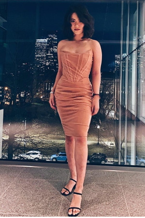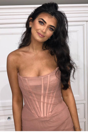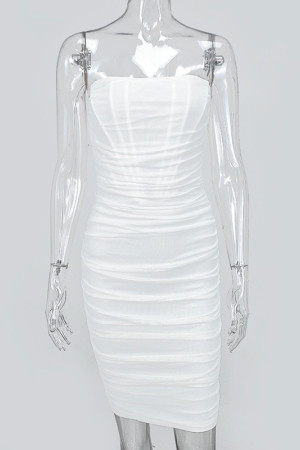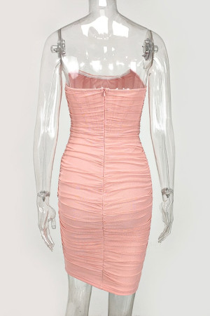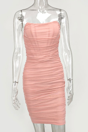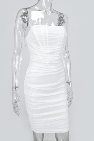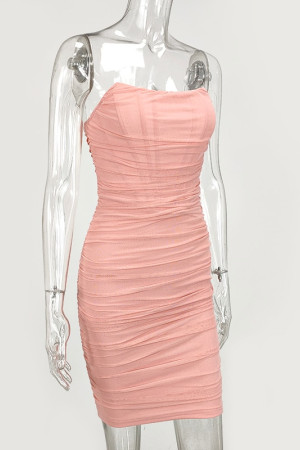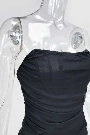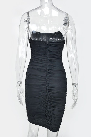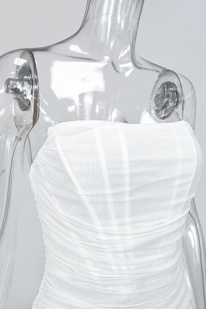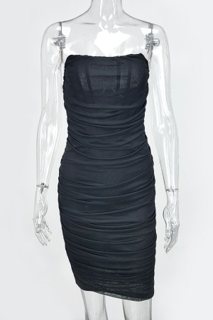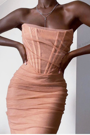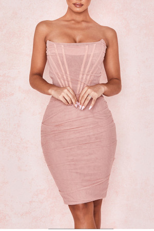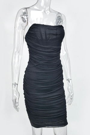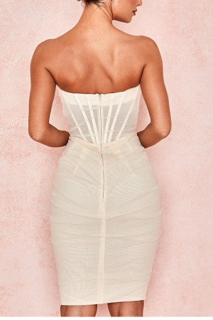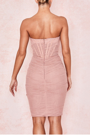 Summer Soiree Ready: Mesh Double Layer Boned Corset Strapless Backless Ruched Bodycon Dress