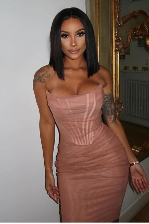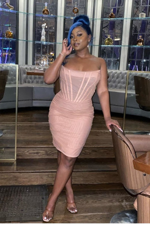 This dress is made of polyester and mesh, with a sheath silhouette and a slash neck. It is sleeveless and strapless, with no decoration and a sexy and club style. The waistline is empire and the pattern is solid. It is suitable for all seasons and occasions such as parties, clubs, casual events, and beaches.