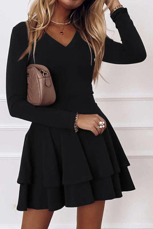 Elegant Autumn Office Mini Dress - Neck Pleated Party Spring Solid Casual Long Sleeve Loose