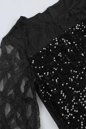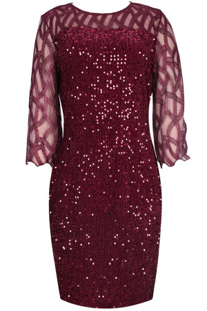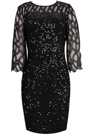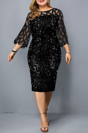 This dress is made of polyester and is suitable for spring and autumn. It has an O-neck, three quarter length sleeves, and a regular style. It is decorated with sequins and has a casual style, natural waistline, and a solid pattern. It is suitable for indoor wear in spring, summer, autumn, and winter, and is suitable for occasions such as clubs, parties, weddings, celebrity evenings, cocktails, red carpets, runways, and proms. It is a high quality plus size dress with a mid-calf length.