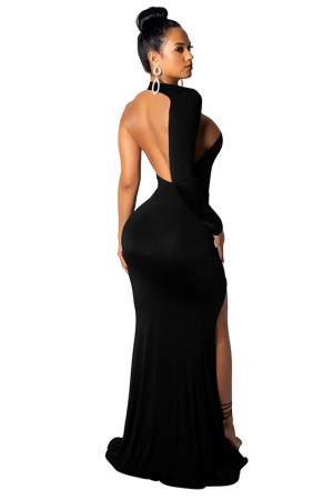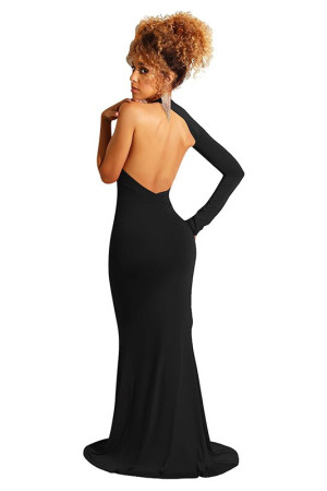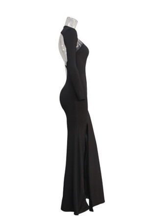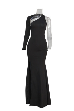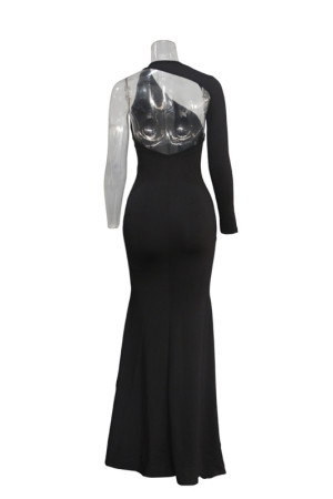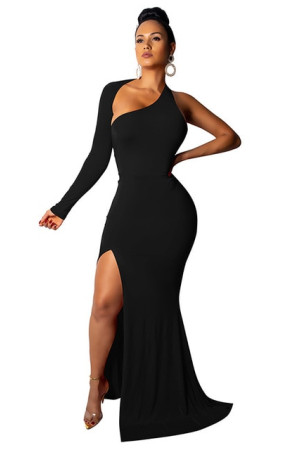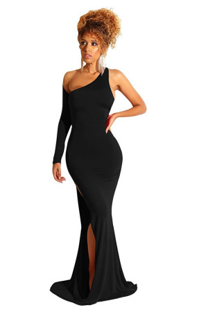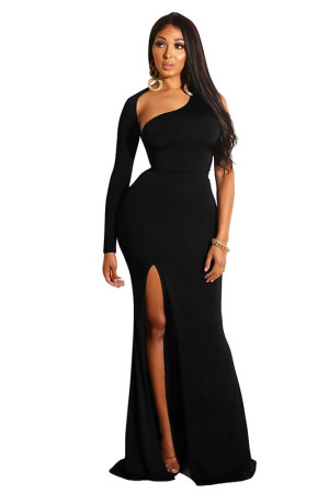 This sexy and club-style dress is perfect for autumn. It is made of a combination of polyester and spandex and features a trumpet/mermaid silhouette, asymmetrical neckline, full-length one-shoulder sleeve, hollow out decoration, empire waistline, and a solid black colour.