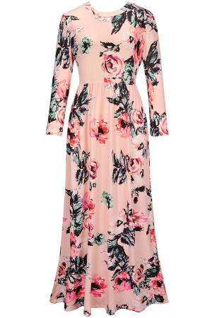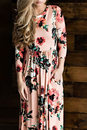 Pretty in Pink: Floral Pocketed A-Line Maxi Dress