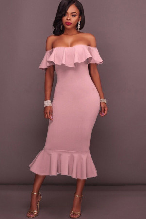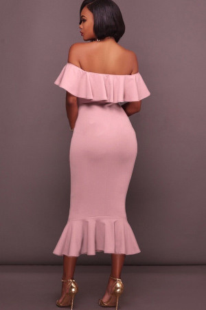 Pretty in Pink: Off-Shoulder Ruffled Mermaid Midi Party Dress