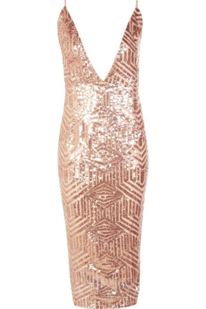 Glamorous Pink Plunging Sequined Slit Party Dress