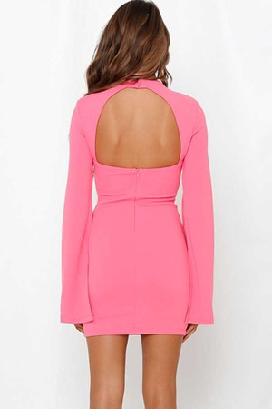 Pretty in Pink Slit Sleeve Cutout Back Bodycon Dress