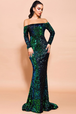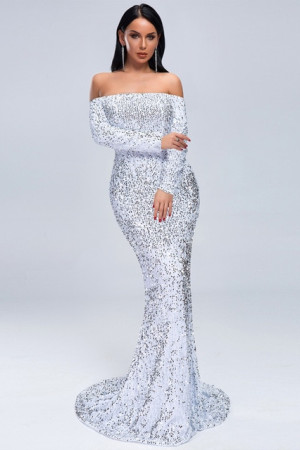 Sparkle in Style: Autumn Winter Off-The-Shoulder Long Sleeve Sequin Maxi Bodycon Dress