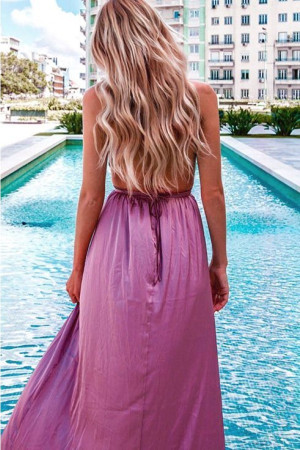 This Purple Plunging Crisscross Lace Up Backless Slit Maxi Dress is a stunning and sophisticated evening dress. It features a plunging neckline with crisscross lace-up detailing, a backless design, and a thigh-high slit. The maxi length and long sleeves make this dress perfect for a formal event or night out.