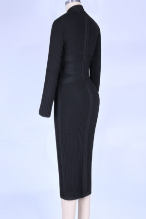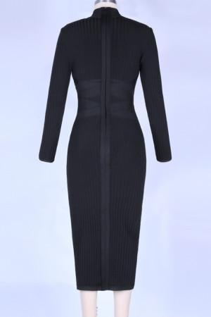 This sexy and club style dress is made from high quality rayon bandage material, with a turtleneck neckline, empire waistline, and sheath silhouette. It features full length sleeves, striped pattern, and no decorations. It is suitable for club/party/wedding/celebrity evening/cocktail/red carpet/runway occasions. Care instructions are to dry clean, avoid folding or pressing, and do not hang on a hanger. It is suitable for all seasons.