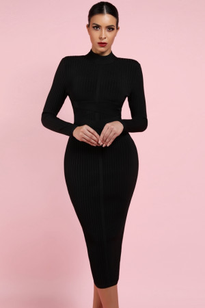 Elegant Turtleneck Rayon Bandage Dress - Perfect for a Night Out