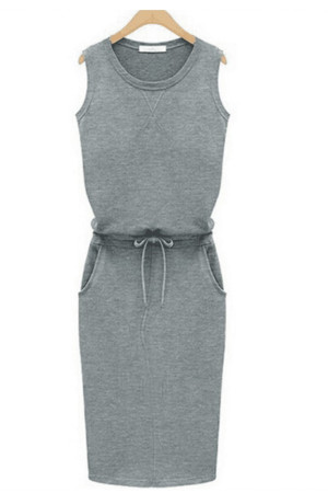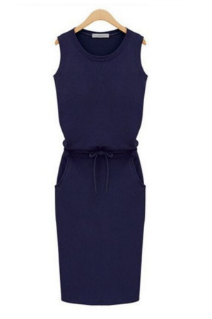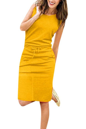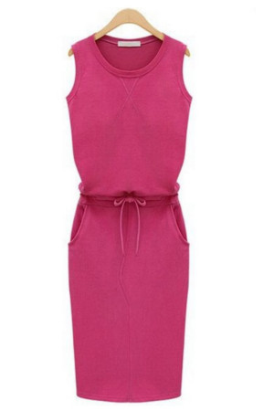 Summer-Ready Solid Drawstring Waist Causal Sleeveless Pencil Dress with Pockets - Perfect for...