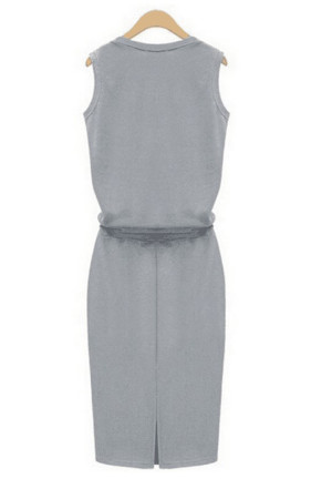 This summer dress is made of cotton and has a pencil silhouette. It has an O-neck neckline, is sleeveless, and has a regular sleeve style. It is decorated with sashes and has a high street style. The waistline is natural and the pattern type is solid.