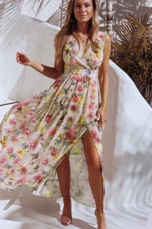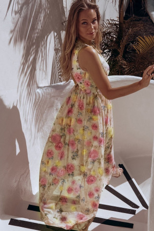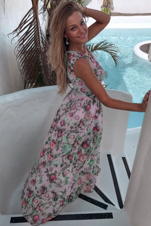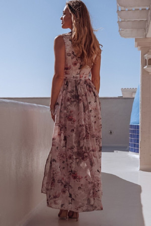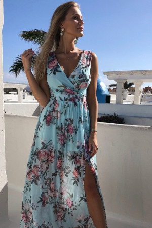 Summer Blooms: Elegant Chiffon Maxi Dress with Spaghetti Straps for Beach Parties
