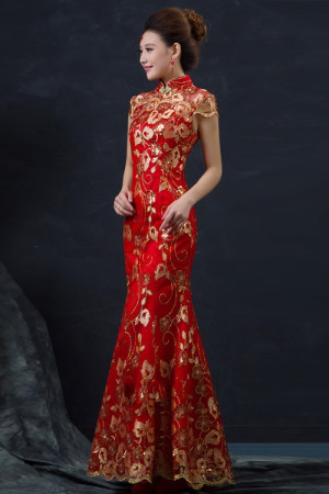 Elegant Red Gold Cheongsam Qipao: Perfect for Your Special Day