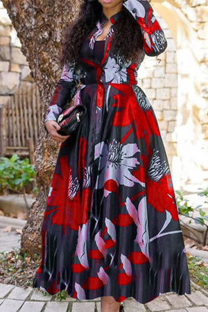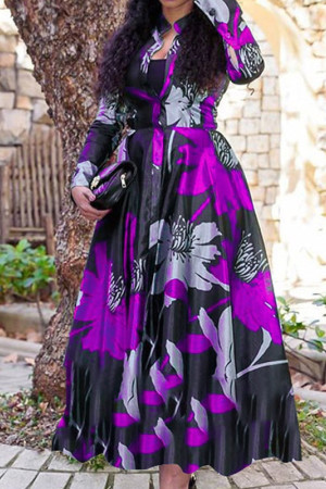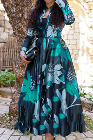 This elegant turn-down collar long dress is perfect for the spring and autumn seasons. It features a regular sleeve style, an O-neck neckline, and a A-line silhouette. It is made of cotton and polyester and has a full sleeve length. The waistline is natural and the dress is decorated with a print pattern. It is a casual style dress and has no decorations.