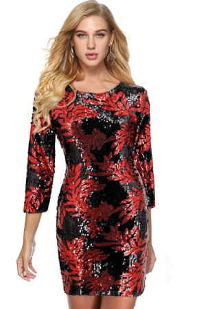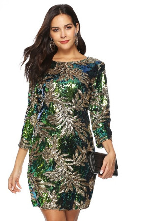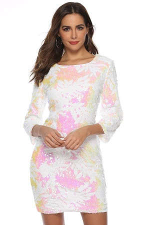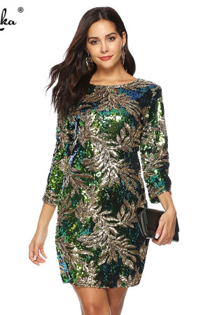 This item is made of mesh, polyester, assorted, lace, and cotton materials, and has a sexy and club style with a sheath silhouette, solid pattern type, full sleeve length, sequined decoration, regular sleeve style, natural waistline, and an O-neck neckline. It is suitable for the spring season.