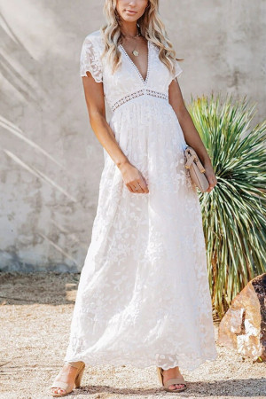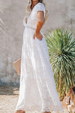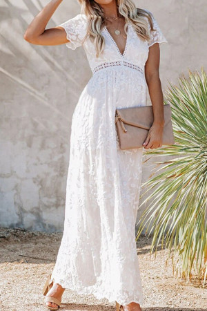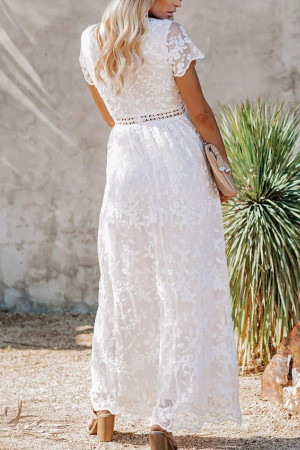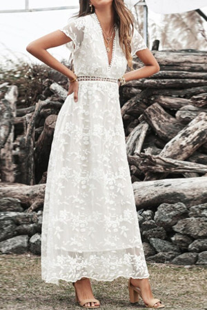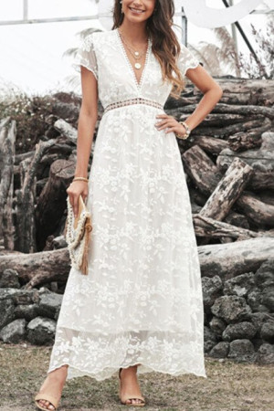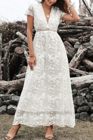 Summer Breeze: Boho Embroidered White Lace Tunic Maxi Dress for Vacation