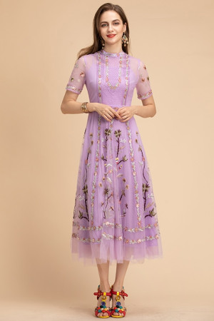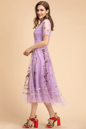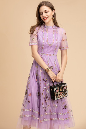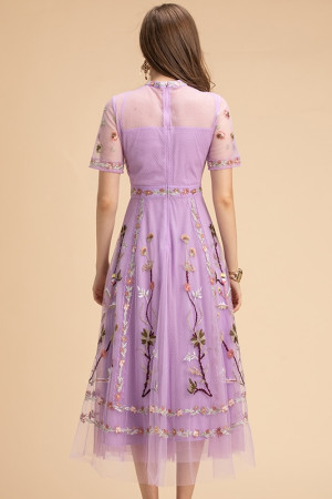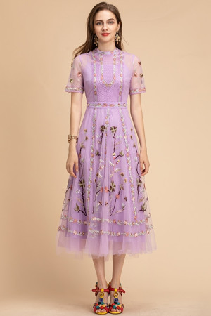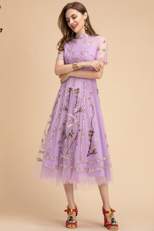 Elegant Summer Floral Embroidered Vintage Party Dress