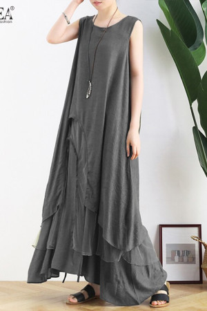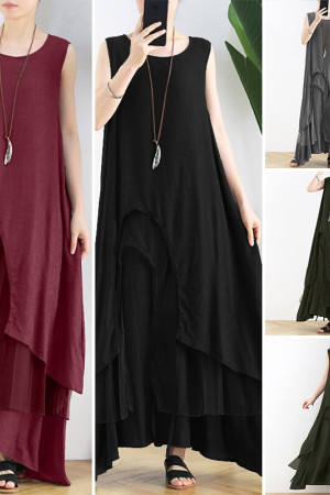 Vintage Summer Style Asymmetrical Sundress Tank Robe Plus Size
