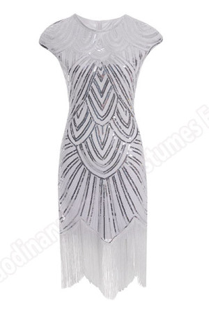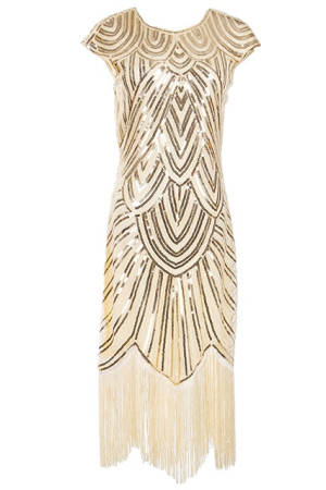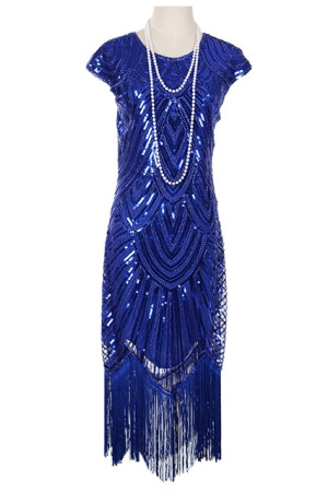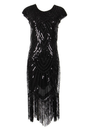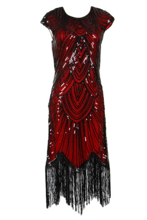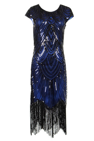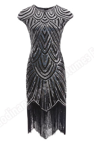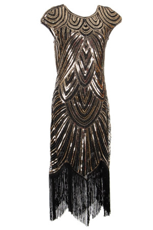 Vintage Gatsby-Inspired Flapper Party Dress with Sequin Fringe and Art Deco Embellishments