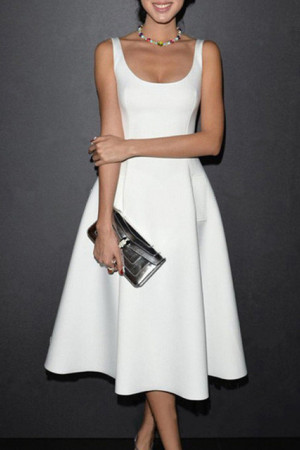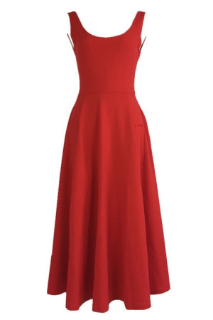 This summer vintage A-line dress is made of a blend of cotton, polyester, spandex, and lanon. It features a solid pattern, a sleeveless tank style, pockets for decoration, a natural waistline, and an O-neck neckline.