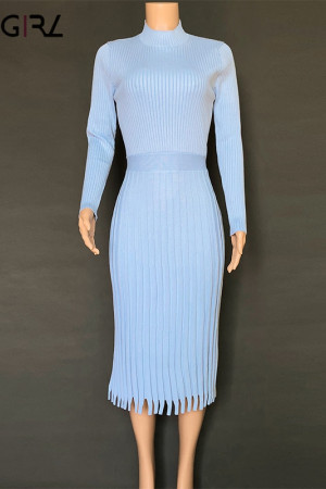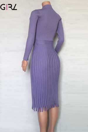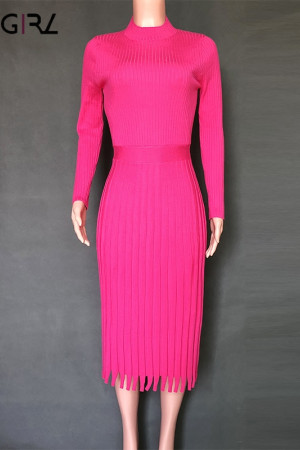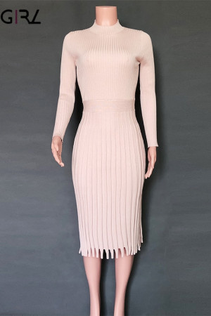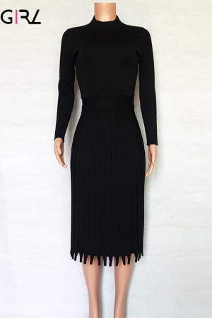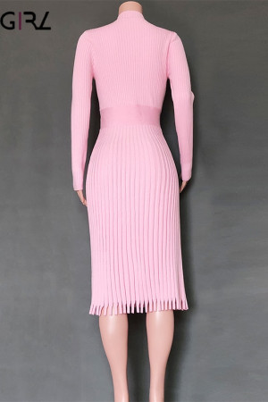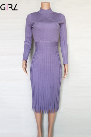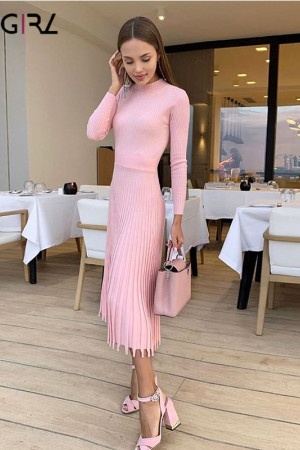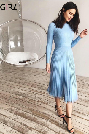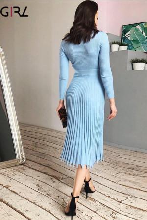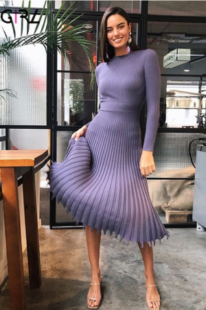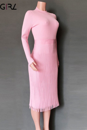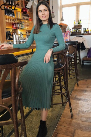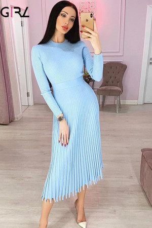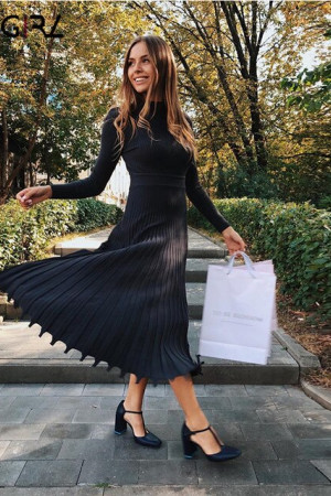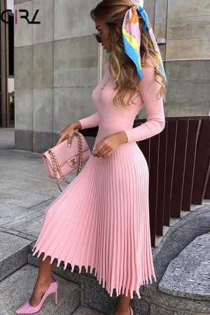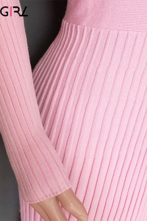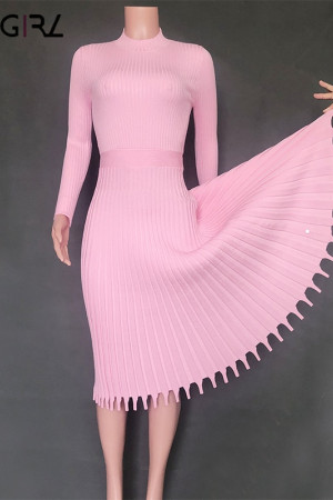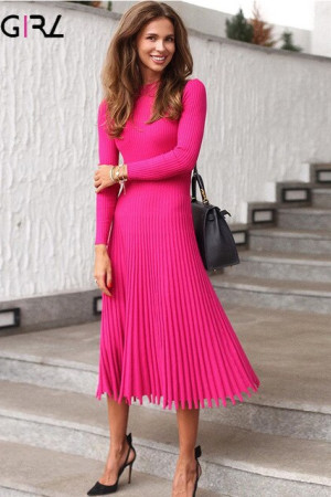 Novgirl's Stylish Knitted Pleated Midi Dress: Perfect for Autumn/Winter Parties
