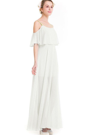 The White Cold Shoulder Ruffles Backless Pleated Maxi Chiffon Dress is a beautiful and elegant dress perfect for any special occasion. It features a high neckline with cold shoulder ruffles, a backless design, and pleated maxi skirt. The lightweight chiffon fabric gives the dress a romantic and feminine look. This dress is sure to make you look and feel your best.
