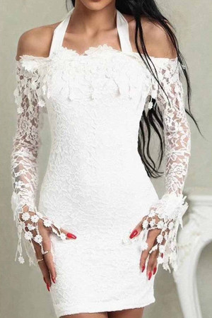 Elegant White Lace Off-Shoulder Bodycon Dress