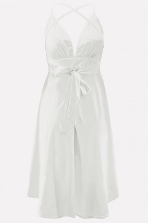 Elegant White A-Line Dress with Plunging Spaghetti Straps
