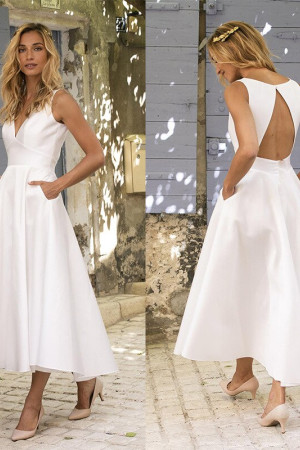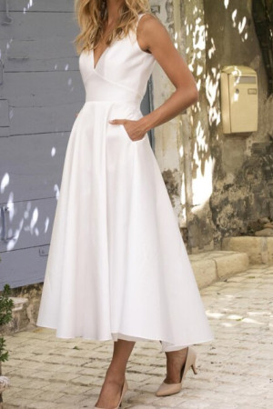 Vintage White Elegance: Retro Backless Mid-Length Sleeveless Slim Summer Party Dress