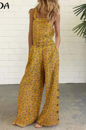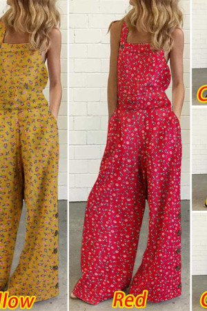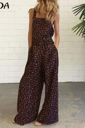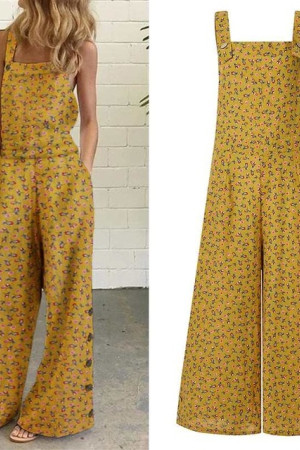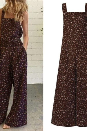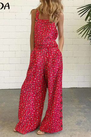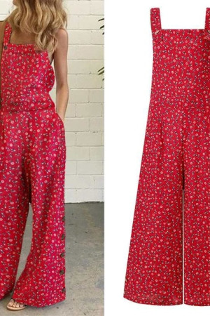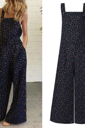 Plus Size Floral Jumpsuit - Long Holiday Summer Overalls Wide Leg Pants Rompers