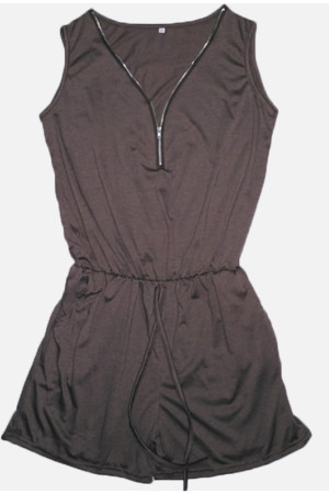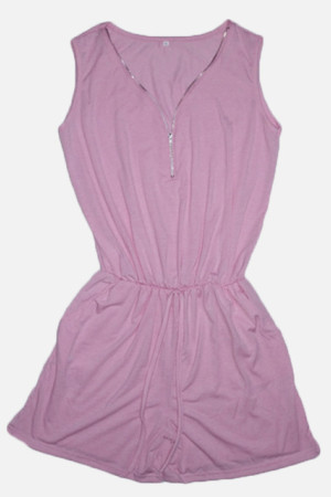 This playsuit is made of polyester and is designed in a casual style with a regular fit. It has a solid pattern and is decorated with sashes. The fabric type is broadcloth.