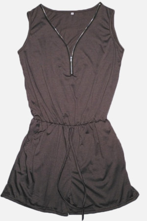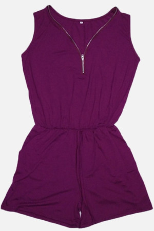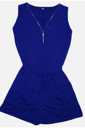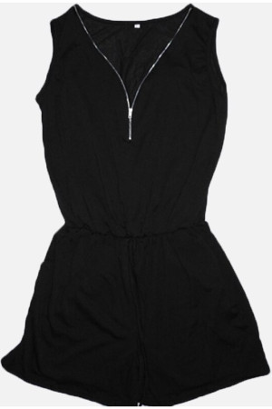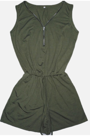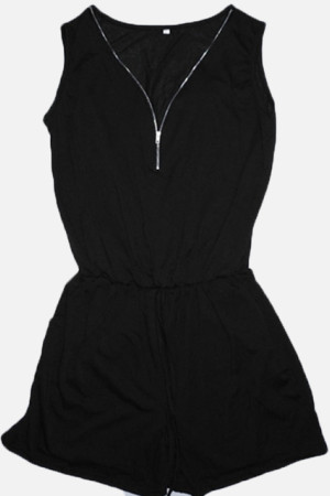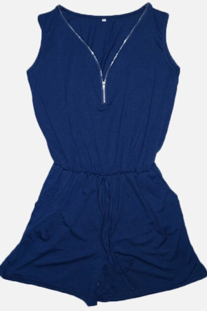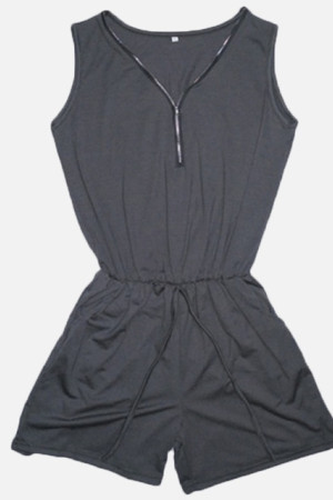 Plus Size Summer Beach Bodysuit with Solid Pockets and Deep Neck Zipper Sleeveless Jumpsuit