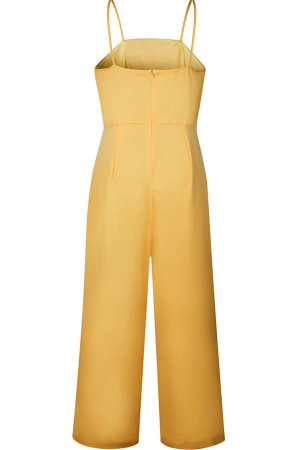 Women's Yellow Spaghetti Straps Zipper Wide Leg Casual Jumpsuit