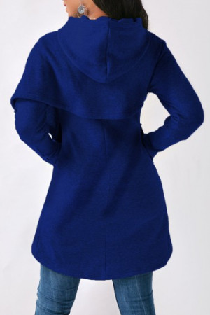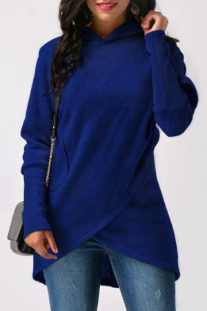 Royal Blue Long Sleeve Hoodie with Asymmetric Hem and Pocket Detail