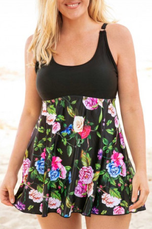 Plus Size Floral Scoop Back Swimdress & Shorts Set