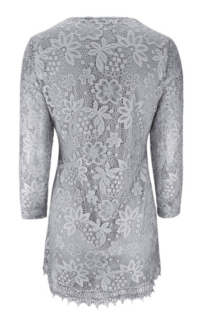This vintage-style three-quarter sleeve dress is made of a blend of polyester and spandex, making it perfect for spring and autumn. It features an O-neck collar and is decorated with lace. The fabric is lace and the pattern is floral.