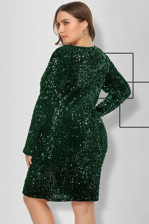 Sparkle in Style: Dark Green Sequined V-Neck Long Sleeve Plus Size Dress