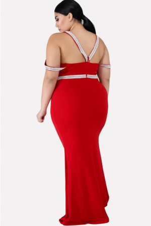 Flaunt Your Curves in This Red Contrast Strappy Sleeveless Plus Size Maxi Bodycon Dress