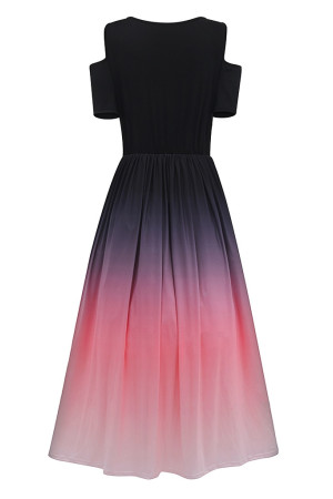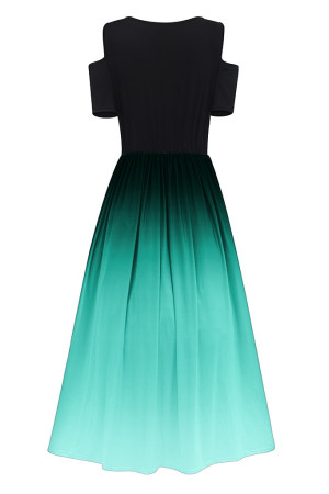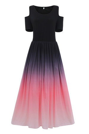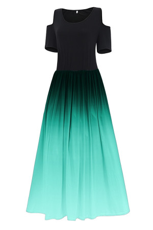 This summer casual dress is made of polyester and features an O-neck, regular sleeves, a pullover closure, a short sleeve length, an A-line silhouette, an empire waistline, and a print pattern. It has no decoration.