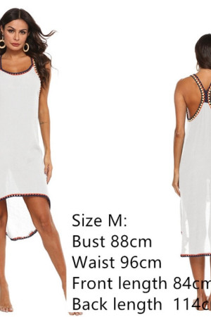 This is a polyester cover up with a patchwork pattern, suitable for girls, ladies, women, female, mujer, woman, and womens. It is suitable for bathing, beach wear, and beachwear, and is a fringe cover up, woman cover up, swimsuit cover up, ladies beach cover up, and white beach dress. It comes in one piece.