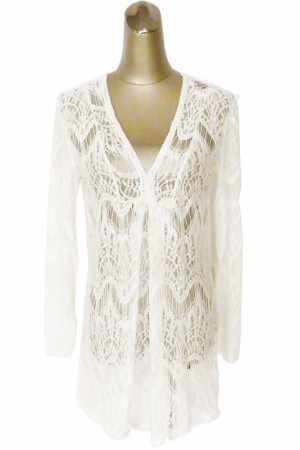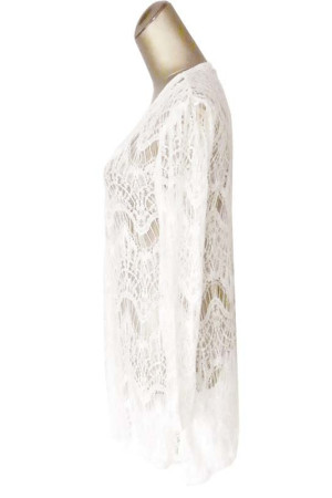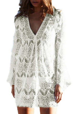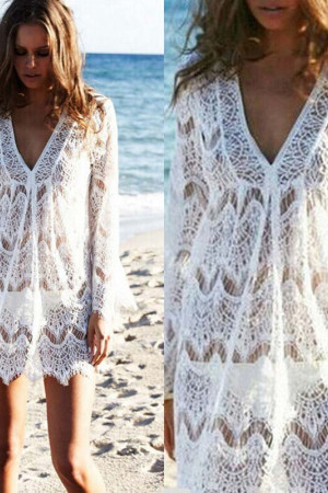Elegant White Lace Crochet Pareo Beach Cover Up - Perfect for Salida De Playa, Swimwear, and...
