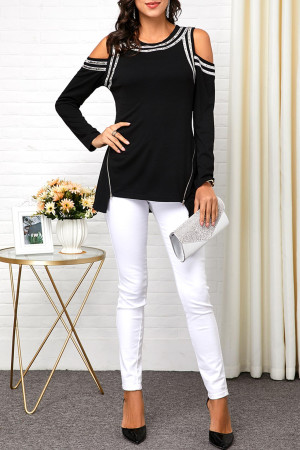Chic Cold Shoulder Zipper Tee with Asymmetric Hem